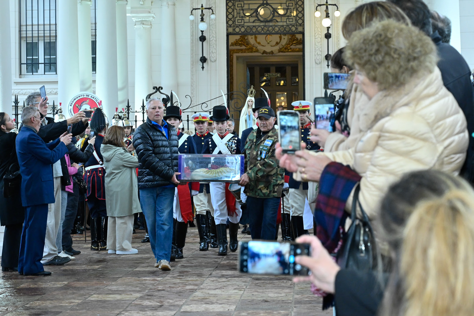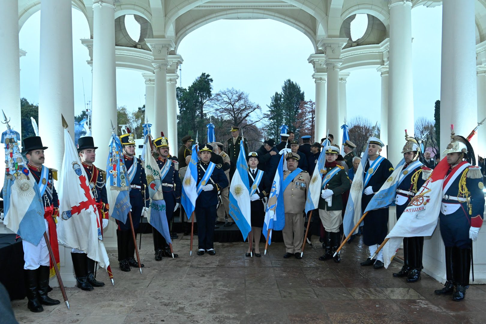 La actividad comenzó con el ingreso de la bandera Argentina que flameaba en el Hospital Militar de Puerto Argentino. Posteriormente, los presentes entonaron el Himno Nacional interpretado por la banda de música del Regimiento de Artillería N° 1.