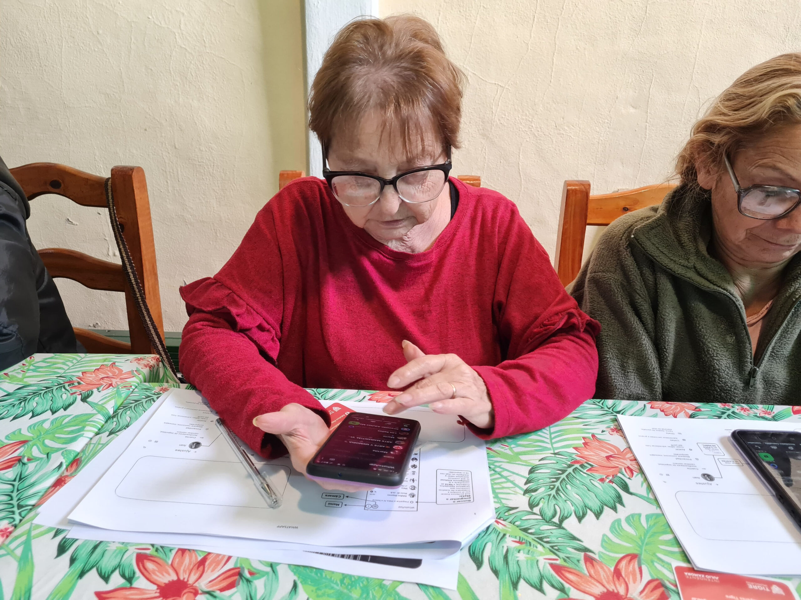 En los encuentros, los adultos mayores se interiorizan sobre el manejo de WhatsApp, ubicación, contactos, envío y recepción de archivos, y escaneo de códigos QR, entre otros temas. Por otro lado, el equipo de CiberCOT brinda información útil para prevenir estafas digitales y capacita sobre cómo actuar frente a situaciones riesgosas.