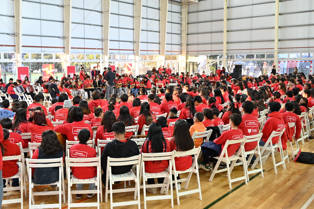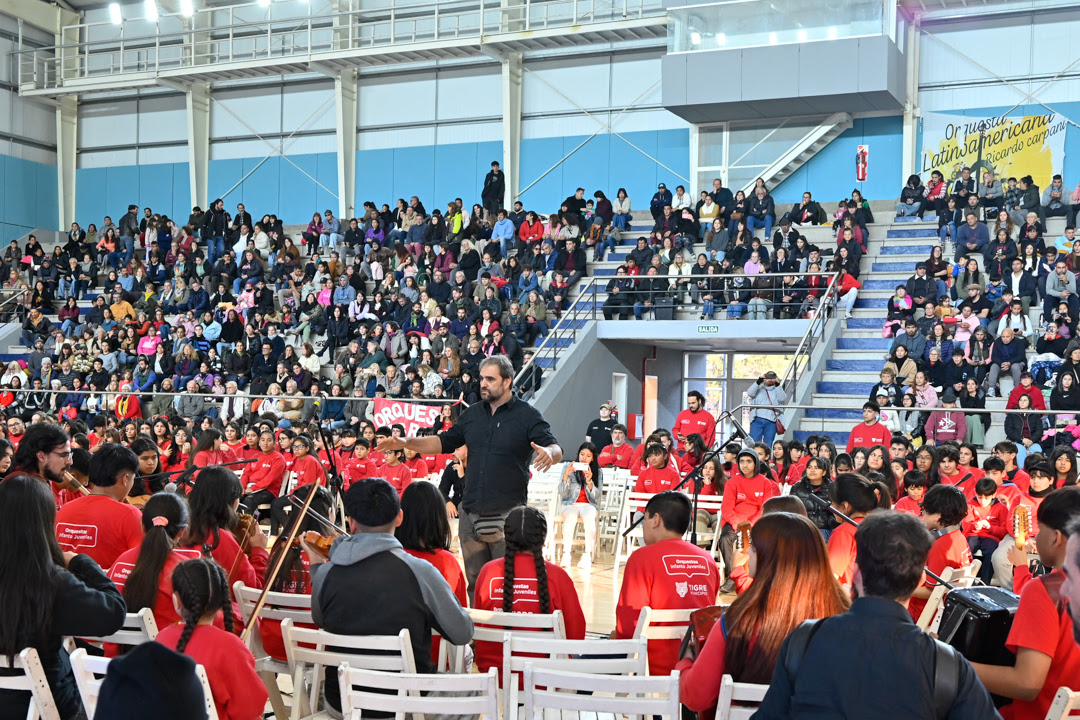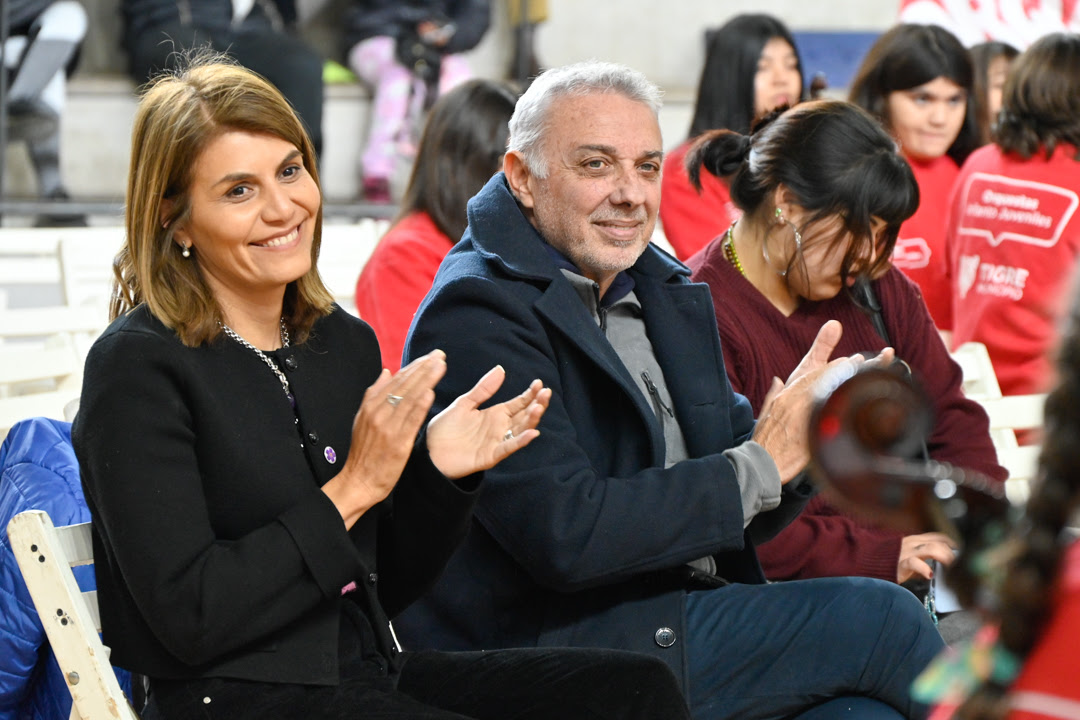 En el microestadio “Intendente Cdor. Ricardo Ubieto” el intendente de Tigre, Julio Zamora, y la secretaria de Desarrollo Social y Políticas de Inclusión, Gisela Zamora, acompañaron el primer encuentro del programa de Orquestas Infanto Juveniles del distrito. En el marco de los 15 años de la iniciativa local, participaron jóvenes de las siete formaciones vigentes, que ofrecieron una presentación conjunta ante vecinos y familiares.